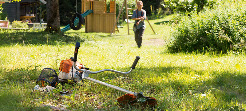 Выручает триммер и на пересеченном рельефе. Овраги, террасы, насыпи — там нет смысла тянуть косилку. А с триммером вы просто идете туда, куда нужно, и спокойно делаете свою работу.