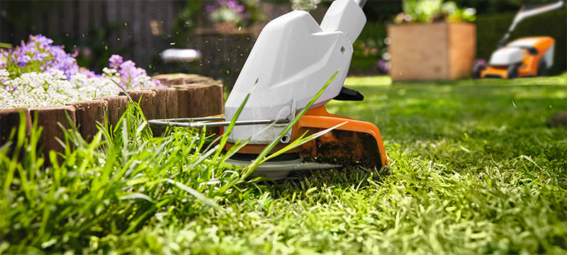 - А триммером подровнять кромки (например, у стен и деревьев).